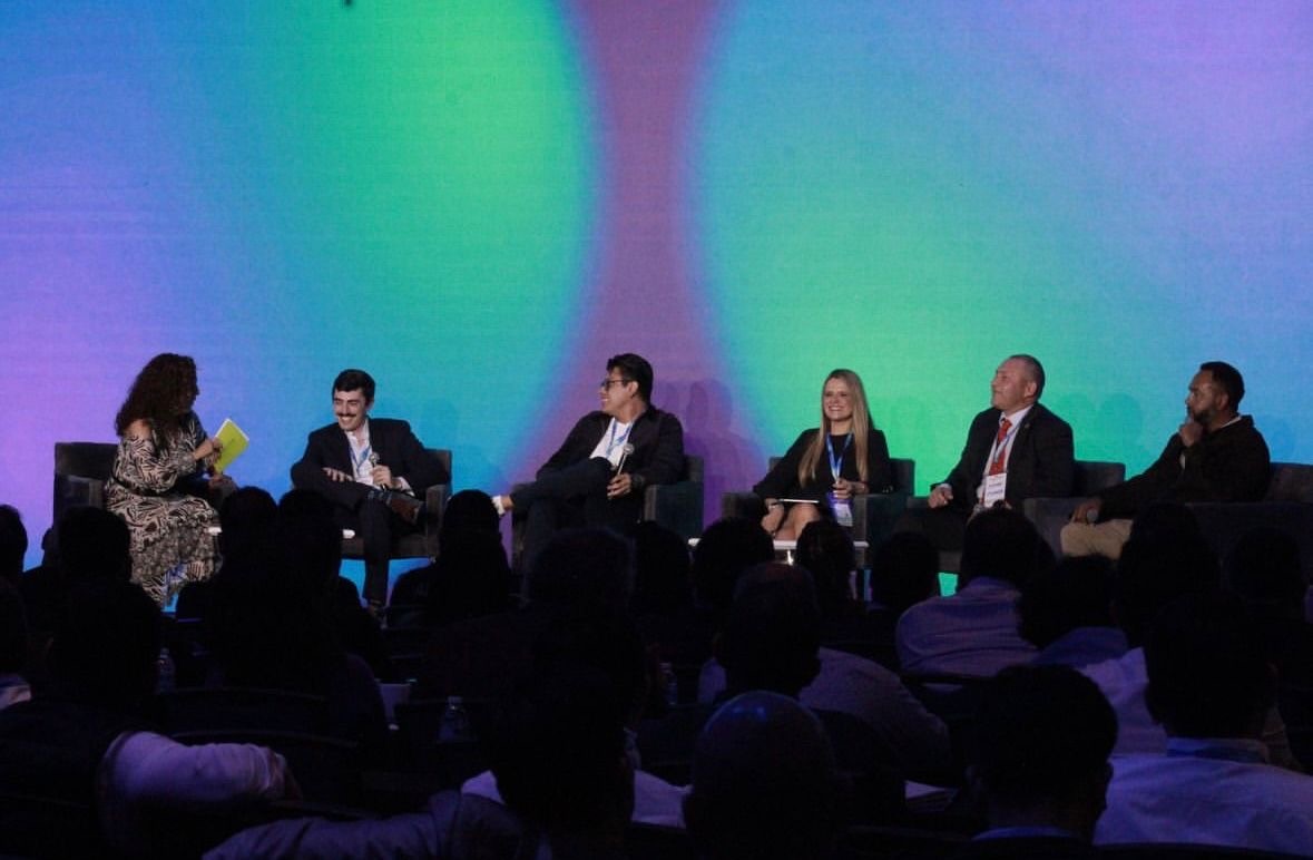 Daniel junto a otros panelistas compartiendo escenario en Tradehub.
