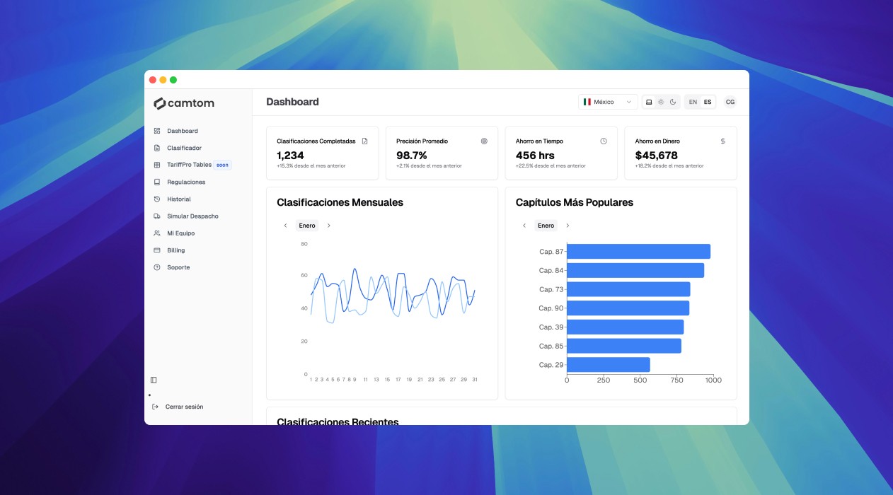 En segundo lugar, ahora Camtom también clasifica mercancías bajo la regulación Colombiana, lo que permitió abrirnos camino en un nuevo mercado que ansiabamos hace un tiempo.
