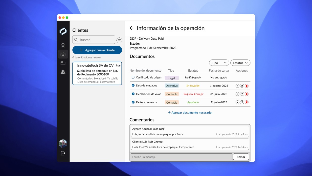 Camtom Docs, un gestor de documentos donde Agentes Aduanales e Importadores podían intercambiar la documentación necesaria para sus operaciones. Algo así como Google Drive con Gmail integrado.